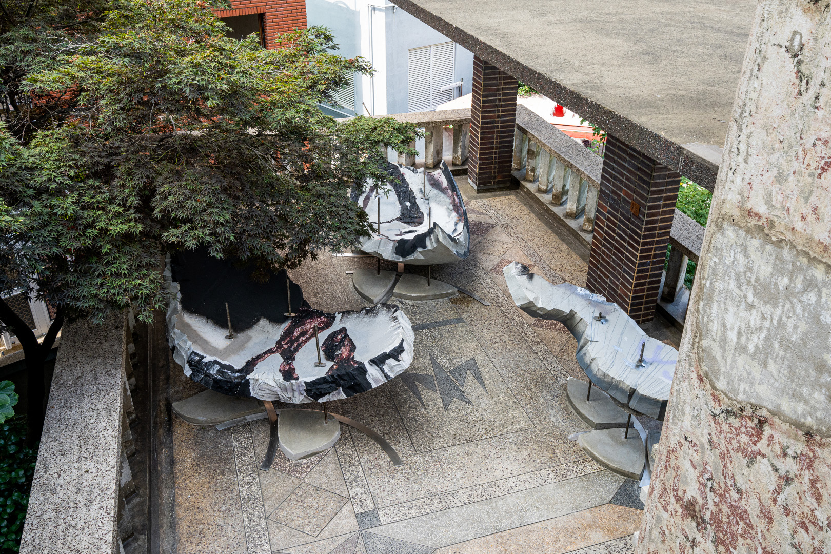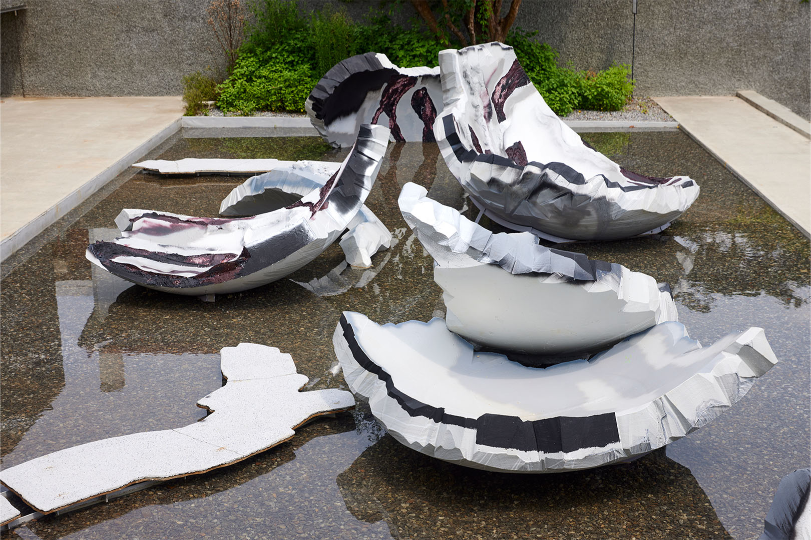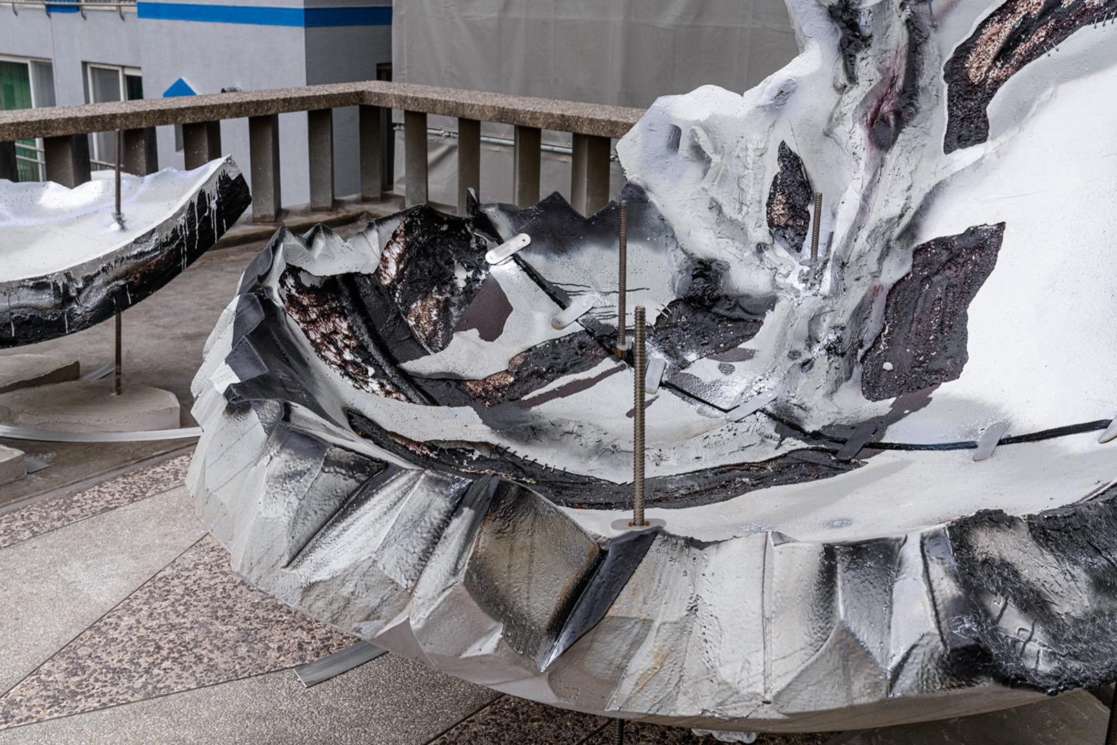 Polystyrene foam, iron pipe, spray paint, epoxy putty